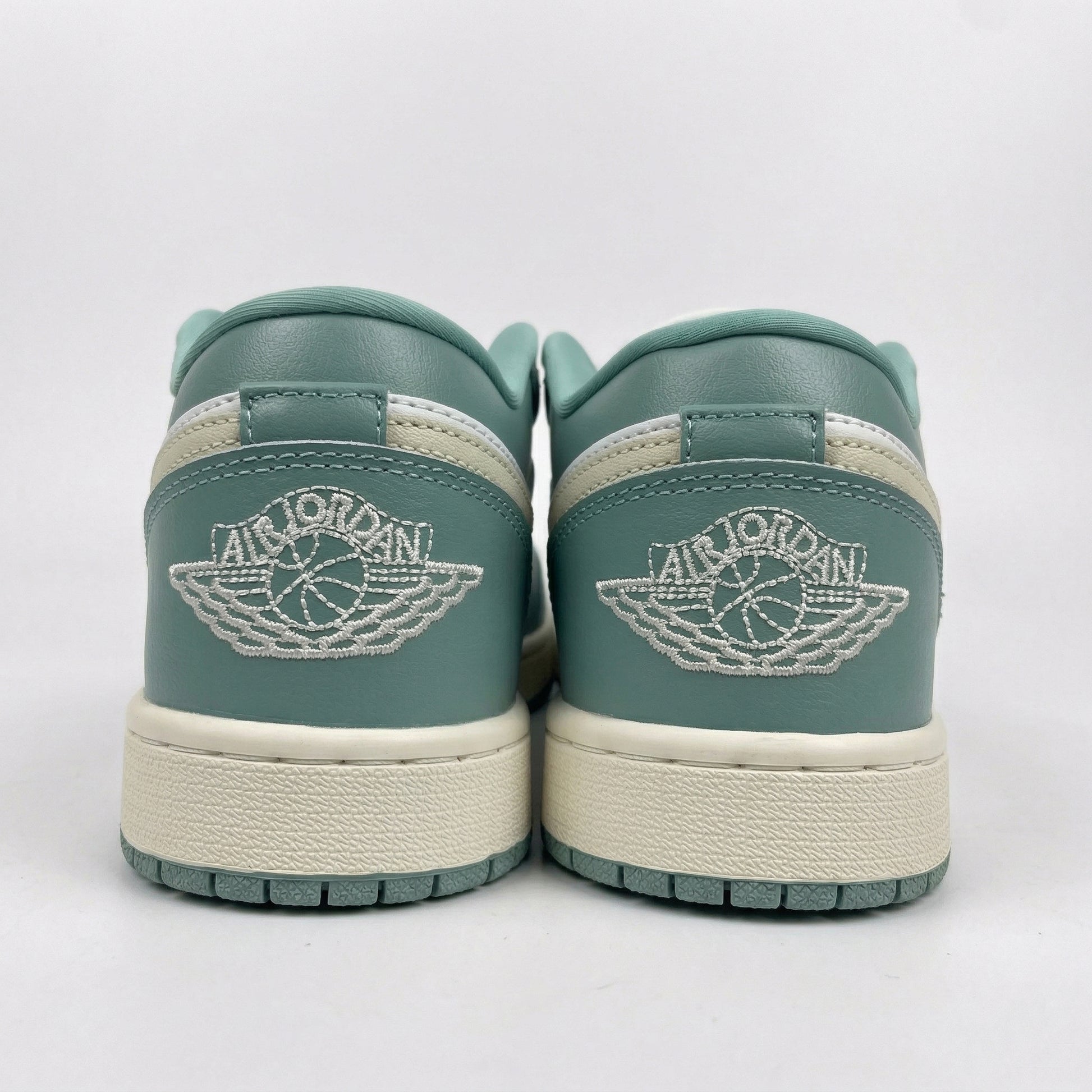 Branding: Sail leather Nike Swoosh, white embroidered Air Jordan Wings logo on the heel