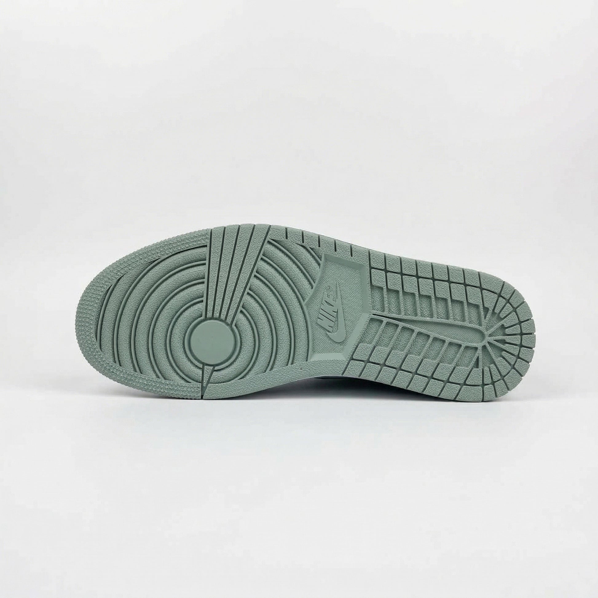 Sole: Vintage-style Sail midsole paired with an Olive Green rubber outsole featuring the classic AJ1 pivot-circle tread