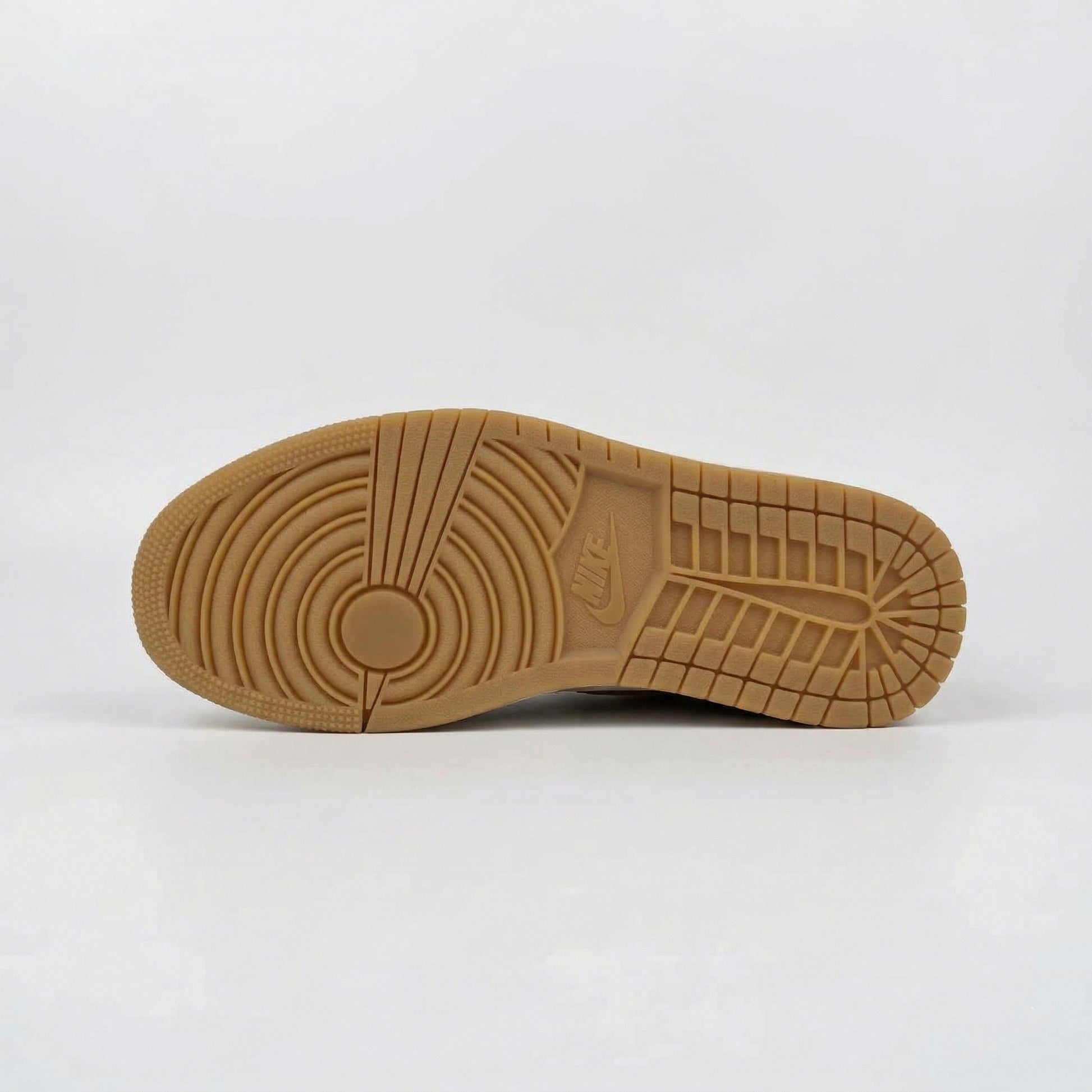 Sole: Full Gum Brown rubber midsole and outsole featuring the traditional AJ1 pivot-circle tread